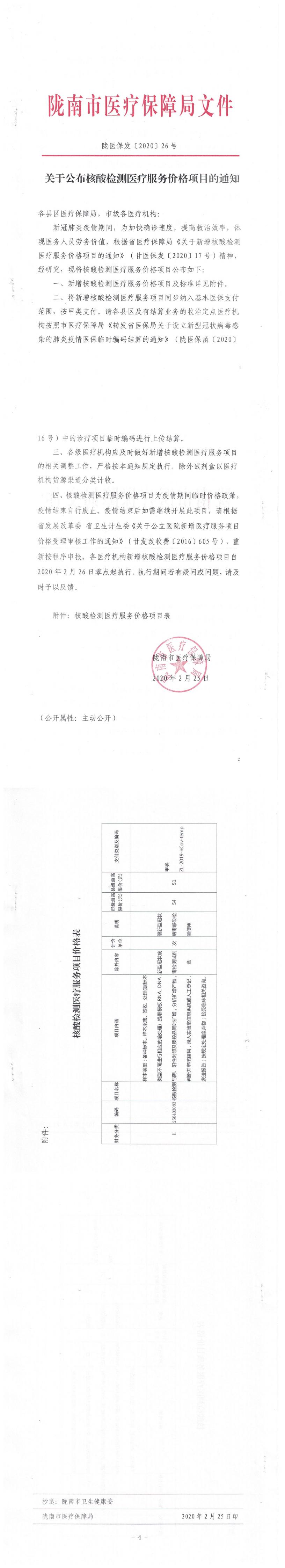 关于公布核酸检测医疗服务价格项目的通知