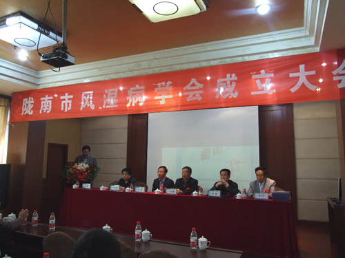 14日上午,陇南市武都区锦龙宾馆会议室气氛热烈,由我市市医院牵头,十余个会员单位,90余名成员组成的陇南市风湿病学会成立大会在此举行。大会特邀了甘肃省风湿病学会主任委员、兰大二院风湿科主任王轶教授、市卫生局副局长杨春、陇南医学会任文蔚会长、我院副院长杨文军,以及来自我市、区、中医院等相关医疗单位的100余位专家学者和医护人员参加了此次庆典活动。