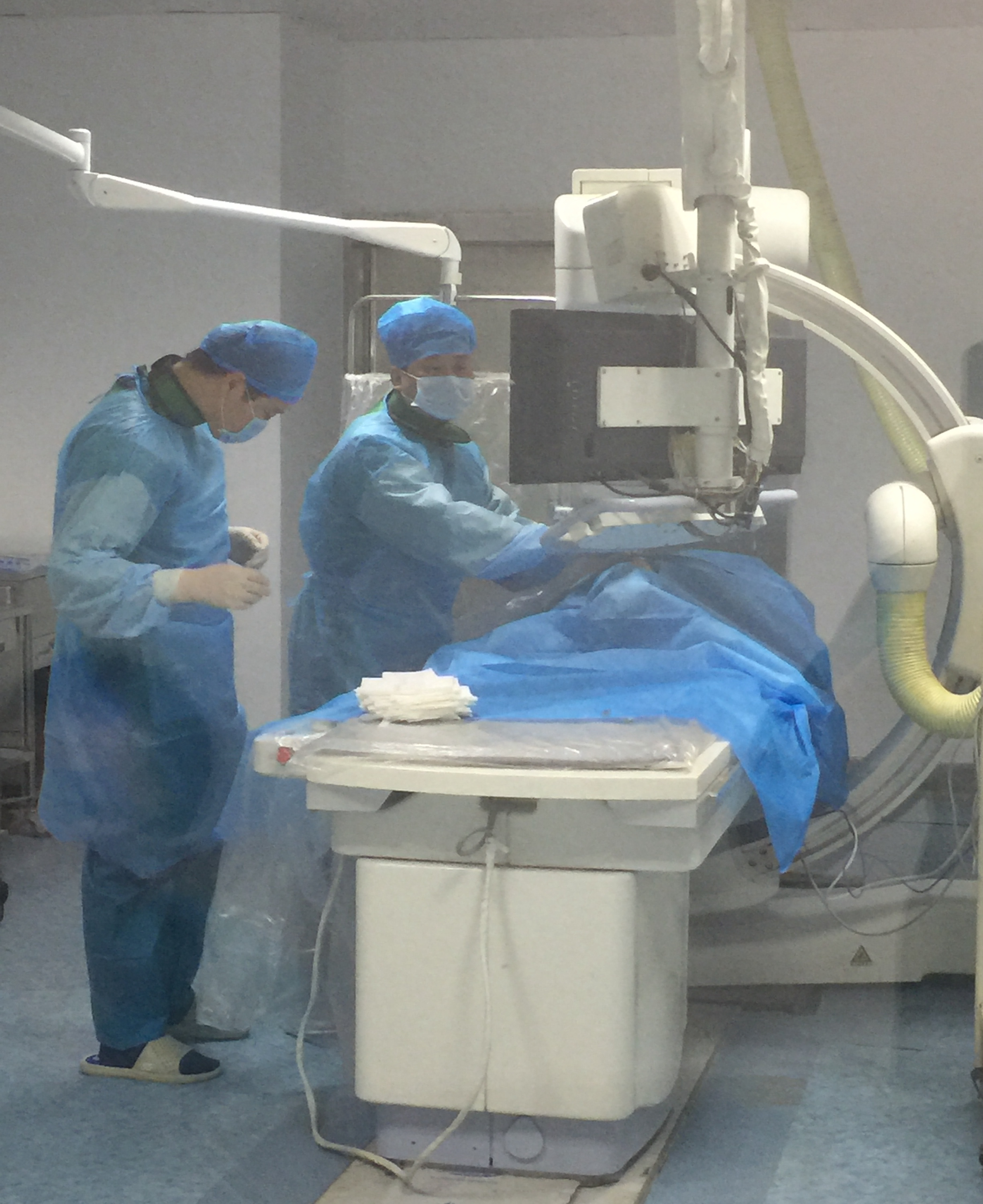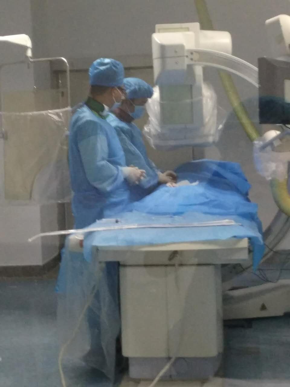 科主任唐小平正在寻找血管入路