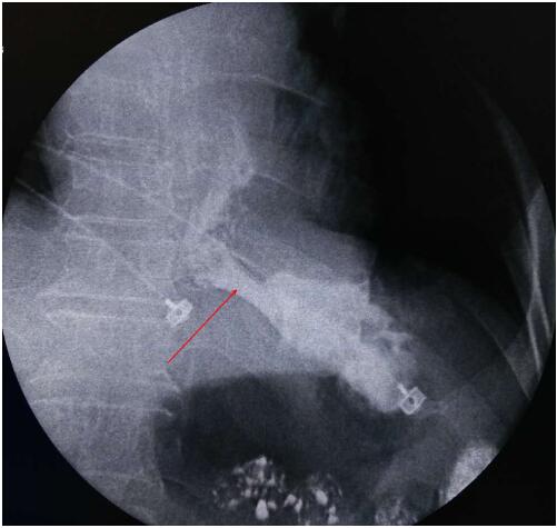 造影剂顺利通过支架进入胃内