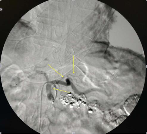 (黄色箭头所指为肿瘤主要供血动脉)