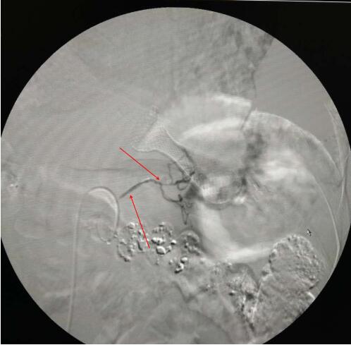 (图中箭头所指为肿瘤主要供血动脉)