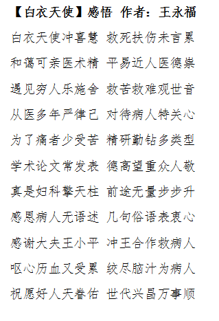 我院妇科医者仁心仁术患者作诗表感谢