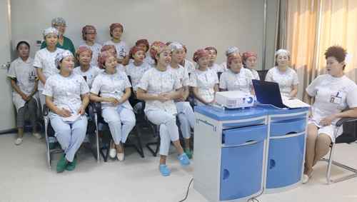 8.22日,消化内科护士长张婷组织全科护理人员进行内镜中心规范操作流程的学习培训,由赴四川省绵阳中心医院刚刚学习归来的护士王罗琴主讲。