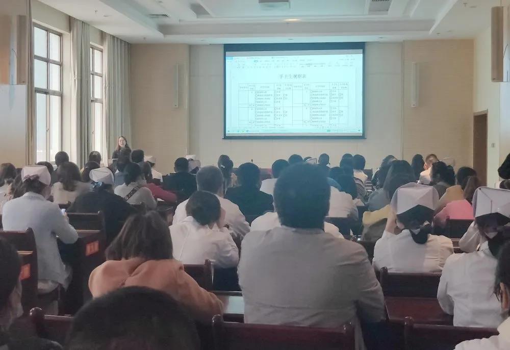 随后,感染管理科科长张婷用通俗易懂的语言、生动形象的事例将手卫生依从性及正确性自查方法进行了详细的培训讲解,并对提出的问题现场进行了一一解答。她强调,手卫生是预防和控制院内感染最简单、最经济、最有效的措施之一,医护人员要养成勤洗手、自觉洗手的习惯,必须做到接触患者前后、无菌操作前、接触患者体液后、接触患者周围环境后规范洗手,严格按照七步洗手法来操作,洗手不仅是为了保护自己,更重要的是能预防医院感染,保护患者,避免交叉感染,保障医疗安全。