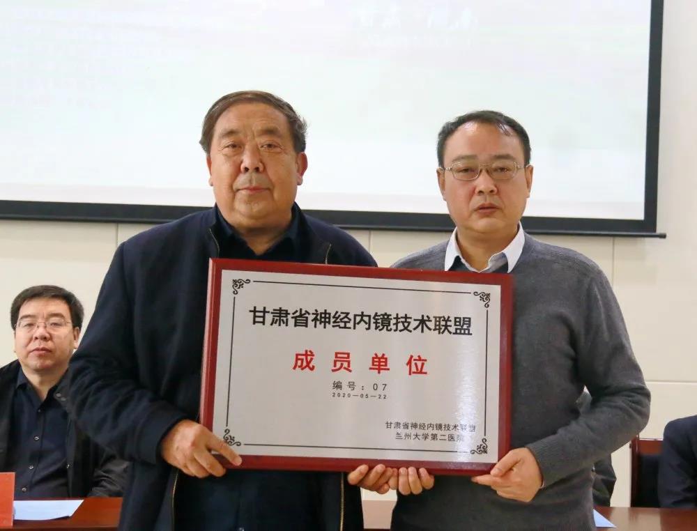 随后,张新定主任向我院颁授了“甘肃省神经内镜技术联盟成员单位”牌匾。