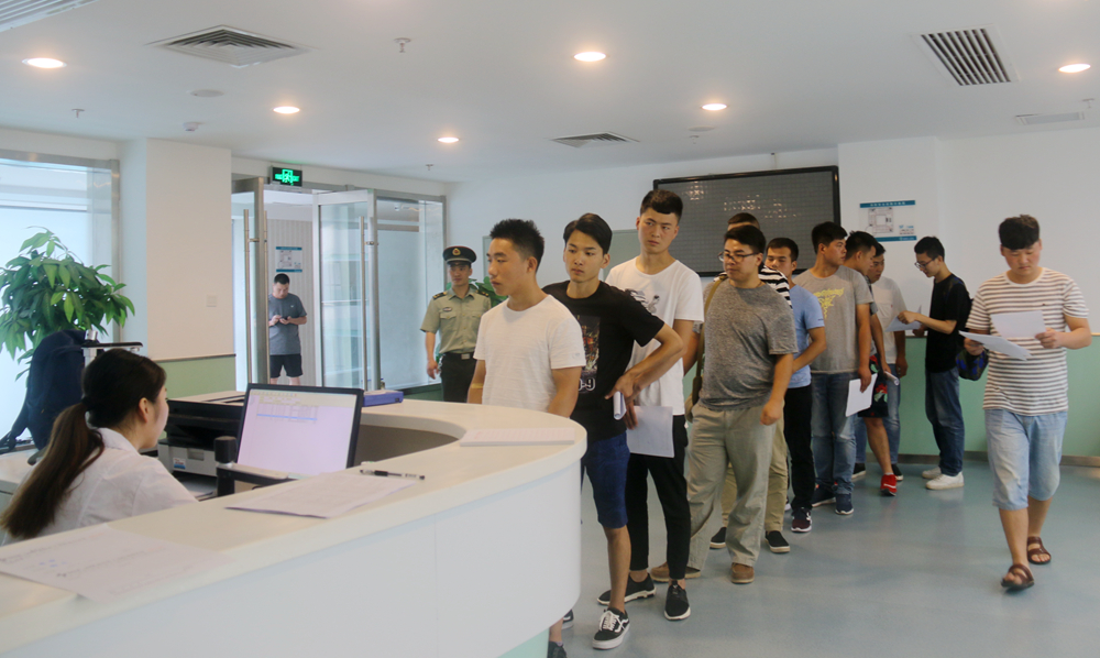 为有效杜绝身体退兵、确保兵员质量、高标准完成年度征兵体检任务,7月14日,我市直招士官应征青年体检工作正式启动,在我院体检中心进行体检。