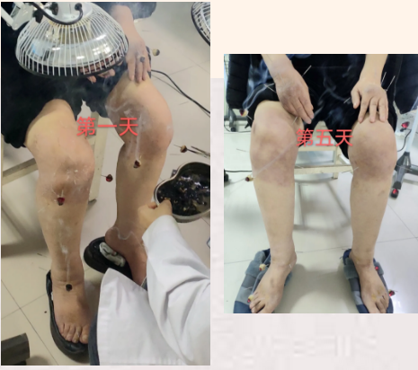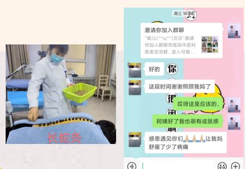 据了解,患者李女士患“类风湿性关节炎”17年余,入院前曾多方求医,但治疗效果欠佳,患者入院时不能自行行走,需由家属扶入病房,右手不能吃饭,全身各关节处肌肤肿胀明显,生活难以自理。入住中医科后,李春主任带领全科医护人员,对患者进行了综合评估,制定了中西医综合治疗方案,尤其是采取了中医特色治疗:长蛇灸、温针灸、小针刀等。经过两天的精心治疗患者已能自行步入病房,五天后可以使用右手吃饭,关节处肌肤肿胀明显缓解,生活可以自理,目前已好转出院。