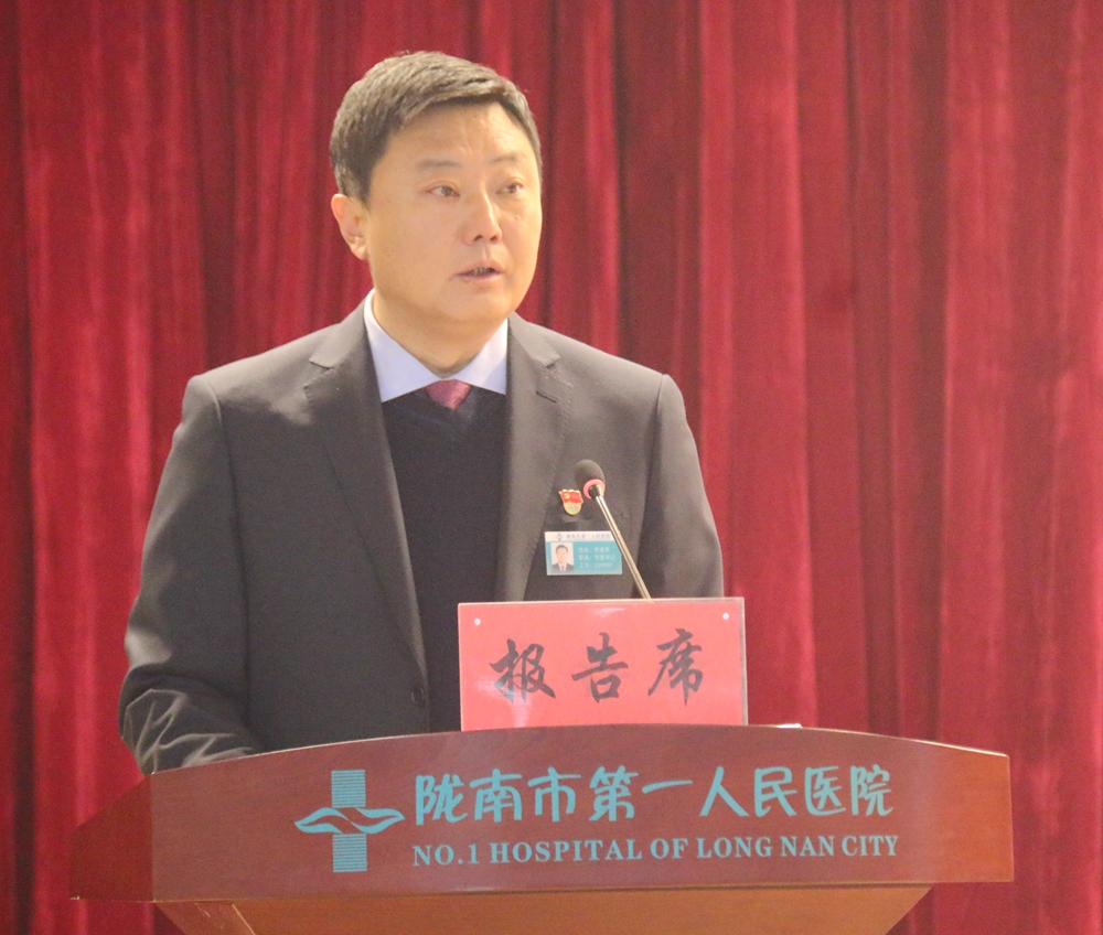 3月27日上午,陇南市第一人民医院召开党员大会。会上,党委书记李成学代表院党委向大会作了题为“乘势而上,奋发图强,推进医院高质量发展,为建设市级区域医疗中心而努力”的工作报告。党委委员、院长陈洮明主持会议,院领导、全体党员参加会议,职工代表、中层管理干部列席会议。