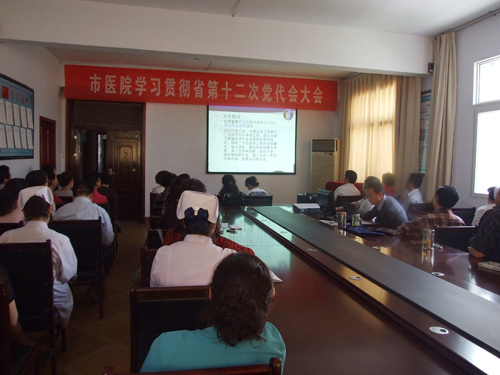 会上,李书记向参会人员详细传达了第十二次党代会大会精神,特别认真学习了省委书记王三运在中国共产党甘肃省第十二次代表大会上的报告。同时,对全院学习贯彻区第十二次党代会精神提出三点要求:一是认真学习,作好专题讨论,明确下一步发展目标、工作任务、具体措施和工作要求。二是及时宣传,把学习宣传党代会精神作为当前和今后一个时期重要的政治任务。三是各科室要精心组织干部职工学习,认真研读报告原文,科学解读报告内容,深入领会报告内涵, 把第十二次党代会报告的精神实质与推动全院各项工作结合起来,与进一步深入开展“优质护理服务”和“三好一满意”活动结合起来,把握工作重点,扎实工作,真正把学习的成果转化为谋划工作的本领和促进工作的措施,为我院的全面发展做出新贡献。