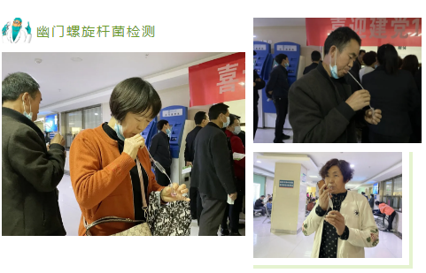 义诊活动,共接待群众义诊咨询120余人(普外科护师王海燕),血压测量50余人,免费测幽门螺旋杆菌14C—HP检测80人(消化内科护师王罗琴、王彩丽),发放幽门螺旋杆菌教育宣传资料100余份(护士长吕婕、护士张琦)。