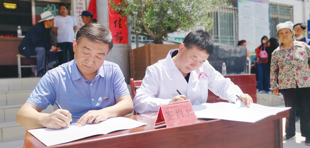 随后,我院院长陈洮明与宕昌县县政府调研员苏继成共同揭牌;并与宕昌县沙湾镇中心卫生院院长石卫国签订市镇两级医联体合作协议。