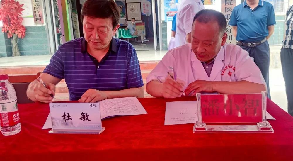 随后,副院长杜敏与红川镇卫生院院长潘小智签署了《医联体合作协议》,并与成县卫健局党委委员杨晋共同揭牌。
