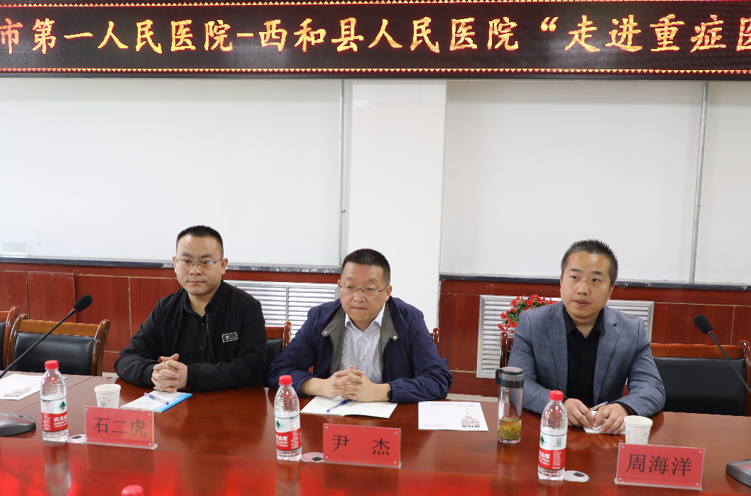 为实践我院“办实事 惠民生”活动,把技术带去基层,进一步提高我市重症医学医务人员的专业知识与技能水平,促进重症医学专业的发展,6月19日,我院重症医学科尹杰主任,周海洋主治医师、副护士长石二虎一行三人赴西和县人民医院开展病例研讨活动。