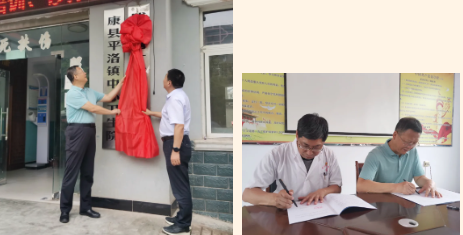 副院长冯旭和康县卫健局局长李国荣共同揭牌,并与卫生院院长梁旭签署了《医联体合作协议》。