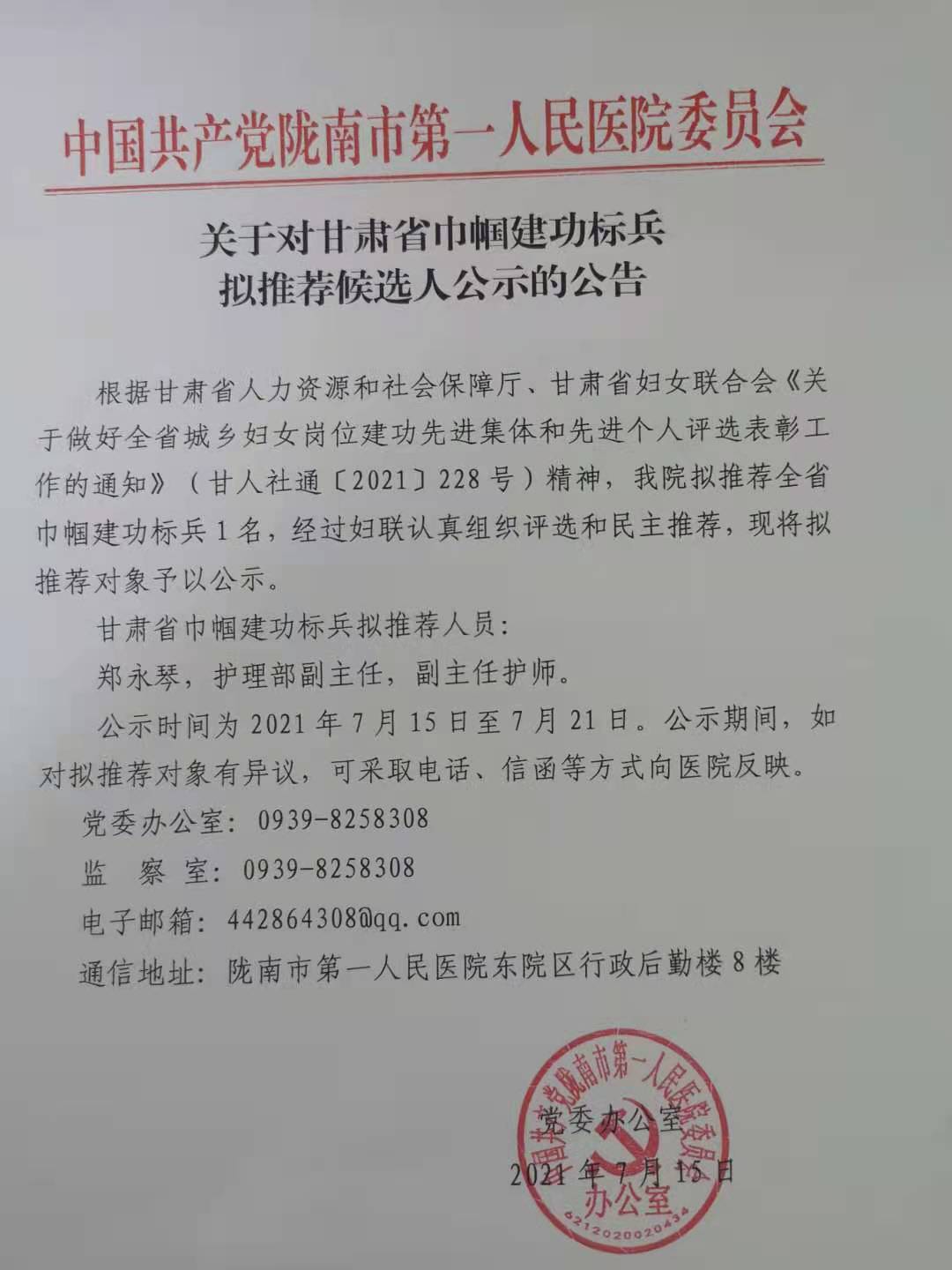 关于对甘肃省巾帼建功标兵拟推荐候选人公示的公告