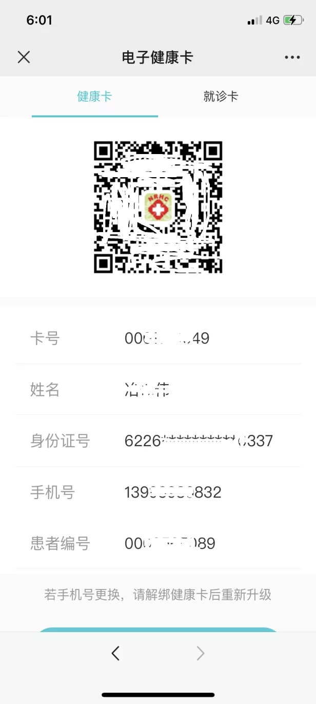 患者或家属可在添加健康卡处填写就诊人员信息,并按步骤完成电子健康卡注册。