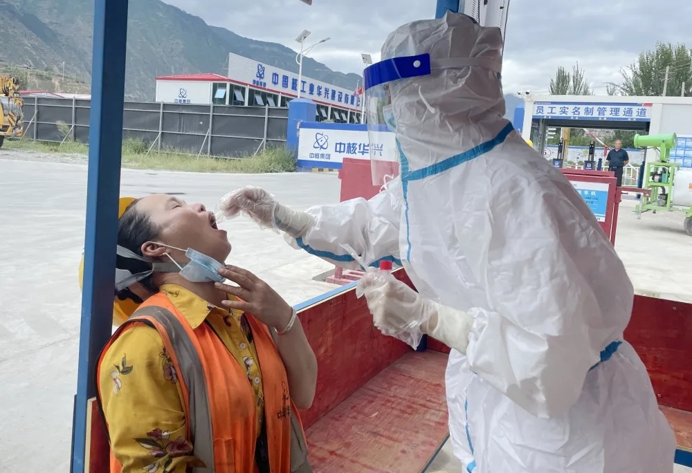 随后,预防保健科科员蔡琳、护士李秀花“上门”进行新冠咽拭子核酸标本采样工作,免去了工人们来回奔波,让大家更安心、更舒心、更方便快捷,还不耽误工作。按照核酸采样要求,经过卫生消毒、信息核对之后进行样本采集,170余名建筑工人在医务人员引导下配合采样,采集过程不到1分钟就可完成。