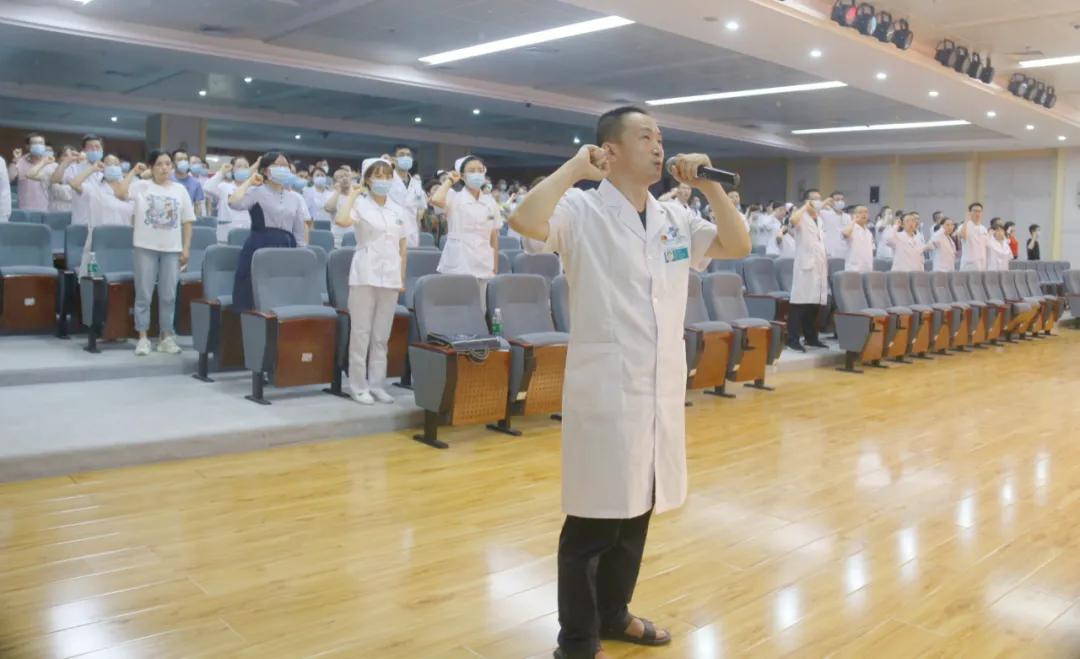 会上,医务科副科长、甘肃省优秀共产党员郑红带领全体医师宣誓,重温医师誓言。