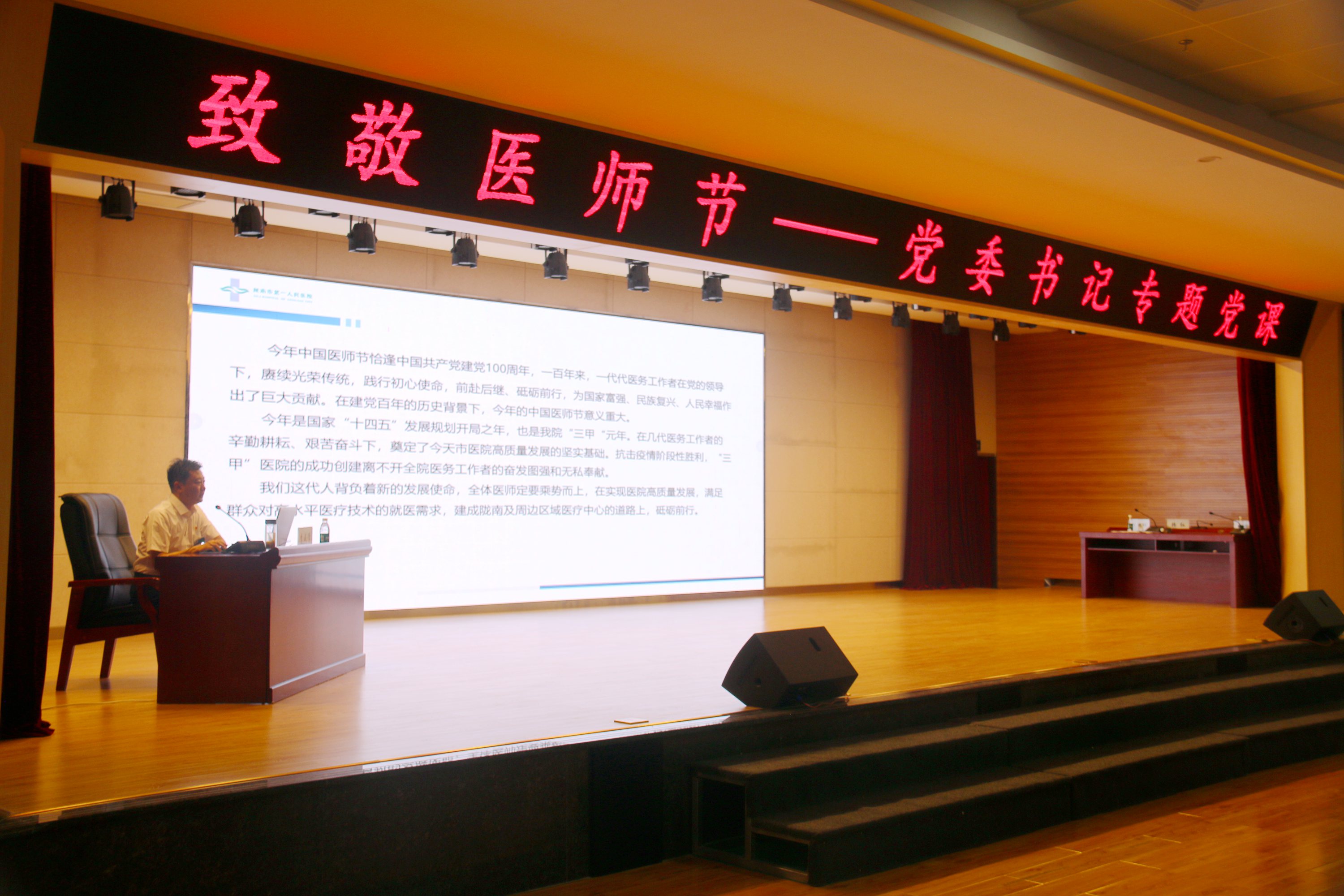 在第四届“中国医师节”之际,为进一步巩固和深化拓展党史学习教育成果,持续深入推进医务工作者在习近平新时代中国特色社会主义思想指引下,为民健康,担当有为。8月19日下午,院党委书记李成学以《百年华诞同筑梦 医者担当践初心》为题,为全院党员、医师们讲授了一堂内容生动、催人奋进的党课。