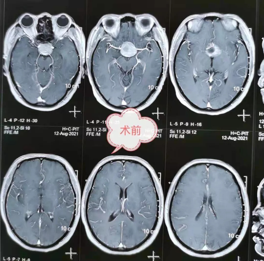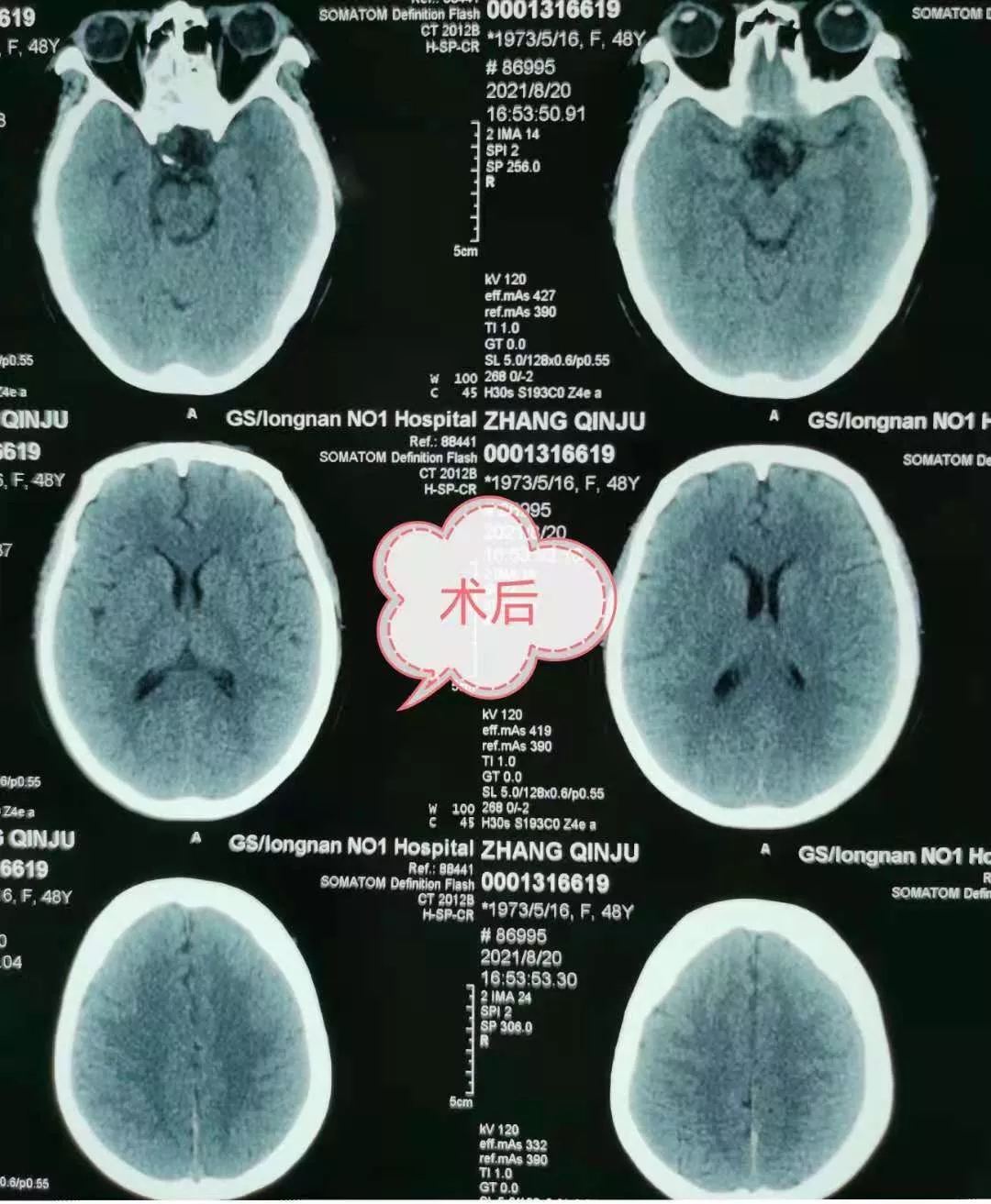 做了精心的术前准备后,在兰大二院李强主任的指导下顺利为患者切除垂体瘤。术后在全科医护人员的精心护理下患者恢复良好,目前患者视力、视野较术前有明显改善,已经完全康复。术后复查头颅CT示肿瘤全切,患者及其家人对治疗结果很满意。