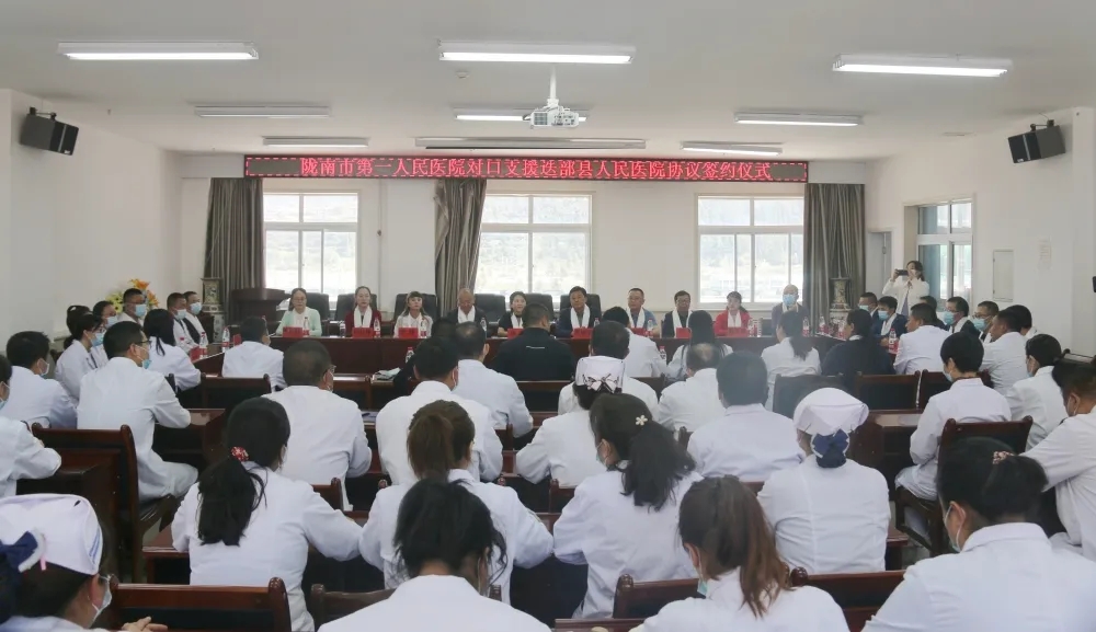 市卫健委党组书记、主任陈静,副主任管宏、维权科科长李静,我院党委书记李成学,党委委员、副院长李朝明及12名各专业科主任组成的医疗队,迭部县委常委、副县长冯光,县卫健局局长安达杰、县人民医院院长杨晓泉及县医院全体医护人员参加签约仪式。