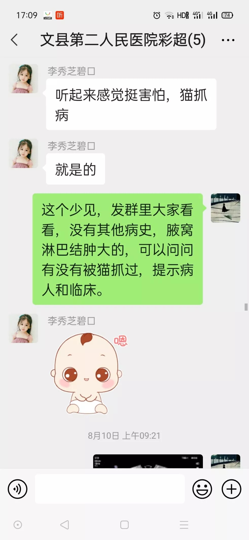 3、建立微信交流群,分享学习经验,为超声科医护人员随时随地解答疑难病例等问题;建立危急值报告制度,利用PPT授课、案例讲解等方式让超声科人员进一步认识到了危急值报告的重要性。