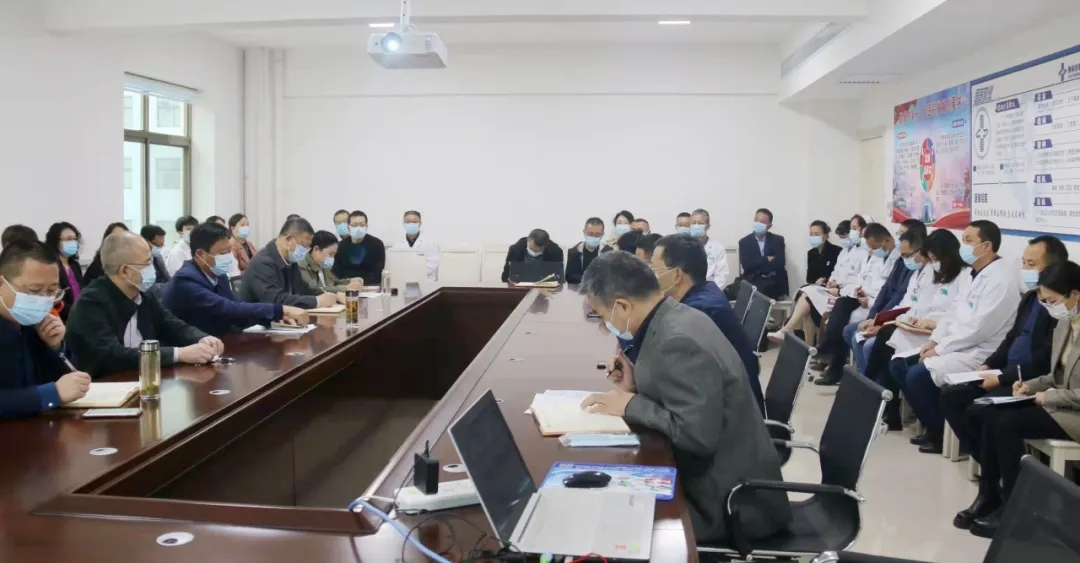会上,副院长韩红通报了当前新冠肺炎疫情形势。