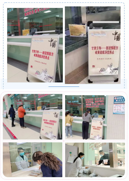 面对我市日益严峻的新冠肺炎疫情防控形势,我院充分发挥中医药在疫病防治中的特色优势,根据甘肃新冠预防方“岐黄避瘟汤、宣肺化浊汤”为基础,紧急组织人员加班加点煎制新冠肺炎预防中药制剂——岐黄避瘟汤、岐黄避瘟颗粒、宣肺化浊颗粒,并在东、西院区为市民免费发放。