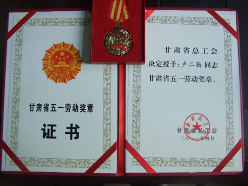 我院卢二勤同志荣获“甘肃省五一劳动奖章”荣誉称号