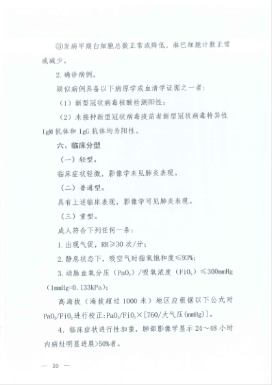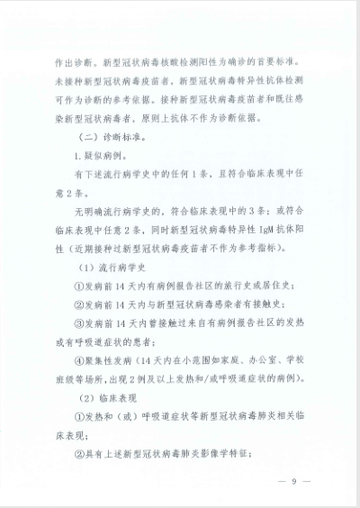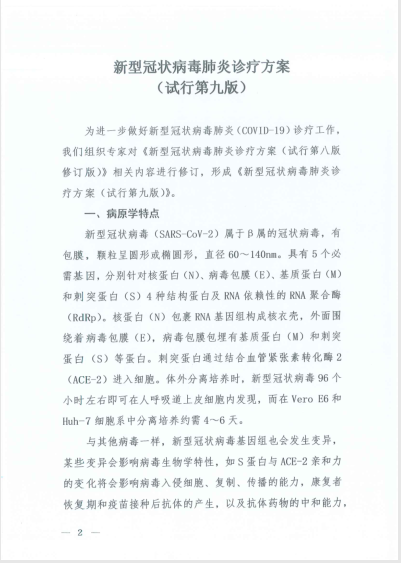 新型冠状病毒肺炎诊疗方案(试行第九版)