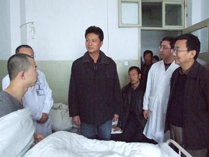 接着又来到我院外科病房,慰问了2.10交通事故病人杨军,并与之亲切交谈,一定要增强面对灾难的信心,振作起来,积极配合治疗,争取早日康复。他又对身边的医疗救治人员叮嘱说,一定要采取最佳的救治方案,采取最科学的救治方法,提供最优质的医疗服务,使伤病员得到最好救治。希望他们能够早日康复。同时感谢我院的医护人员为保障人民群众健康,付出的辛勤劳动,也希望医院进一步加快发展步伐,更好地为广大患者服务。