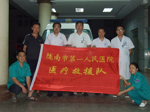 8月11日晚至12日,甘肃省陇南市突降暴雨,引发了泥石流、山体滑坡等地质灾害,致使多处交通道路堵塞,电力设备、通讯设备中断,机关、单位、厂房、企业、居民住房进水或者倒塌。暴雨引发的地质灾害已造成陇南市25人遇难,19人失踪,86人受伤。全市8个县区、54个乡镇、358个村、148700多人受灾。灾情就是命令,时间就是生命!根据市委市政府的部署和安排,院领导立即召开了紧急会议,抽调医疗骨干,成立一支5人的医疗救援小组,做好一切准备赶赴陇南市受灾比较严重的成县。刚刚从舟曲医疗救援回来的杜主任等人没来得及做任何的休整,在接到通知后立即投入到医疗救援的准备当中,没有人抱怨,就像杜主任说的:“最近陇南因为气候的原因,随时可能发生自然灾害,我已经做好了那里需要就往那里去的准备。”