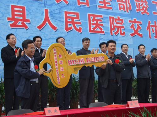 2010年10月9日,对于深圳人和陇南人来说,都是一个终身难忘的日子。经过2000多名深圳援建者800多个日夜的连续作战,由深圳直接援建甘肃地震灾区的24个项目暨陇南市人民医院、康县人民医院交付仪式在新建的陇南市人民医院举行,标志着深圳直接援建我省地震灾区项目全部竣工。
