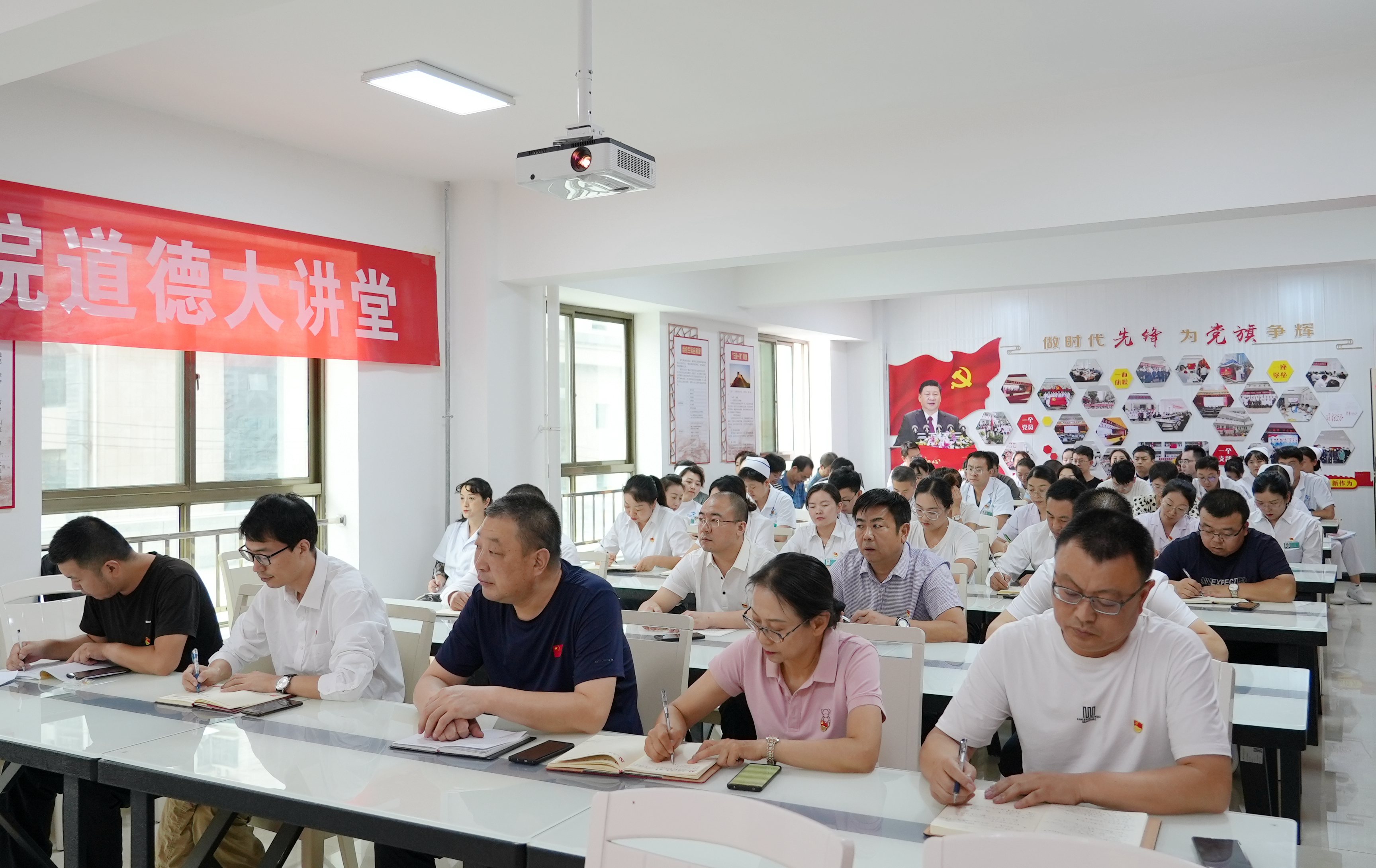本次党课活动是院党委用以课代训的方式对各党支部新当选支委进行的一次集中党务工作培训,是提高各支部书记、支委履职本领和工作能力水平的重要举措,医院党员干部职工将以此次培训为契机,全面提高理论素养和党务工作能力,切实履行党建责任,不断开创支部建设工作的新局面,以党建为引领,推动医院各项事业迈上新的更高台阶。