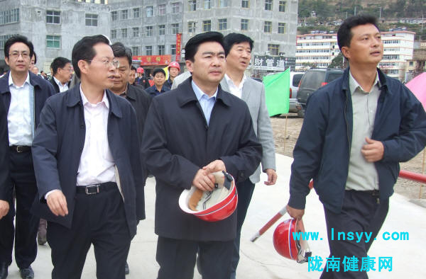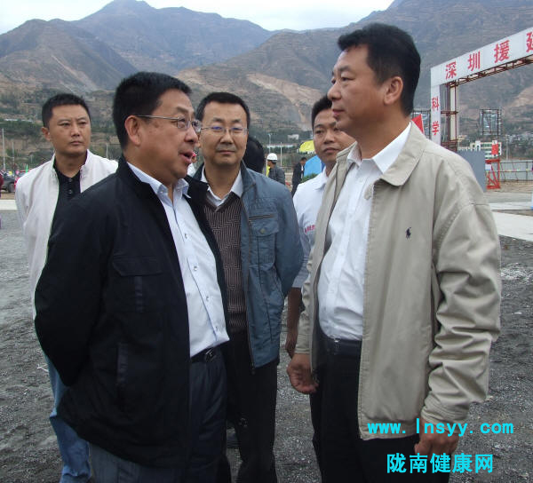 10月28日,在省委常委、常务副省长冯健身的陪同下,广东省委常委、深圳市代市长王荣来到深圳援建我院异地重建东江新址工程项目落实情况和进度进行了实地检查。陇南市委书记王玺玉、代市长许文海、市政协主席邱正保;深圳市领导李锋、吕锐锋,市政府秘书长李平,市对口援建前方指挥部及市有关部门负责人等参加了我院新址项目进展情况实地检查活动。