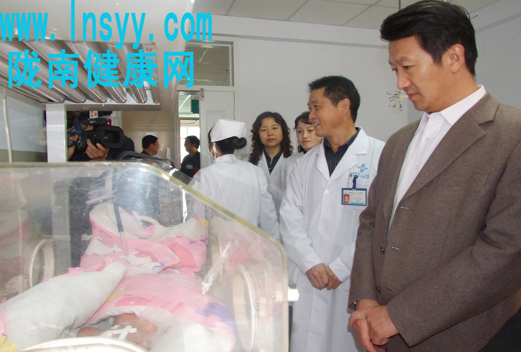揭牌仪式结束后,卫生厅副厅长常继乐来我院儿科察看ICU病房建设