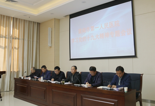 按照会议议程,闫晓光同志首先传达了全市卫计系统关于学习党的十九大精神的专题会议精神;副院长冯旭同志宣读了《陇南市第一人民医院关于学习宣传贯彻党的十九大精神的安排意见》。文件要求,一是要充分认识党的十九大精神的深刻内涵和重大意义;二是要切实加强党的十九大精神的学习宣传;利用各种媒体加大对十九大精神的宣传力度,重点抓好我院中层以上干部的学习,积极组织好广大党员和职工的学习;三是要以十九大精神为统领全力做好我院当前各项工作。