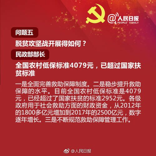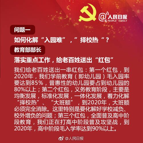幼有所育、学有所教、病有所医、住有所居…关于这些,十九大记者会上部长们有了详细回应:①到2020年高中阶段毛入学率达到90%以上;②80%以上居民15分钟内到达最近医疗点;③全国农村低保标准4079元,已超国家扶贫标准…